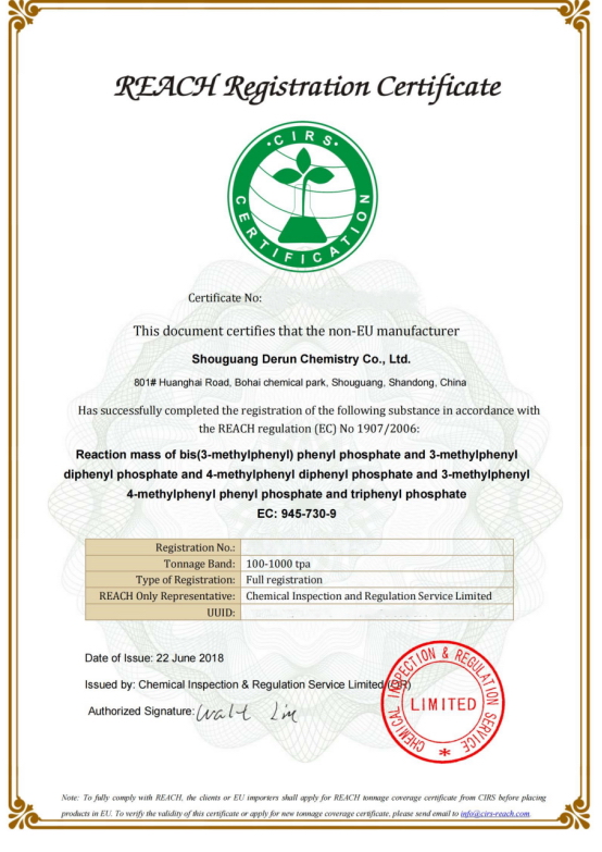 EU-REACH는 유럽시장 진출을 위한 허가증이며, 서광덕윤화학은 2012년 12월 EU-REACH 예비등록을 받았으며, 유럽시장 개척을 위해 2018년 6월 EU-REACH 등록증을 취득하여 유럽시장 개척을 위한 준비를 마쳤다.
